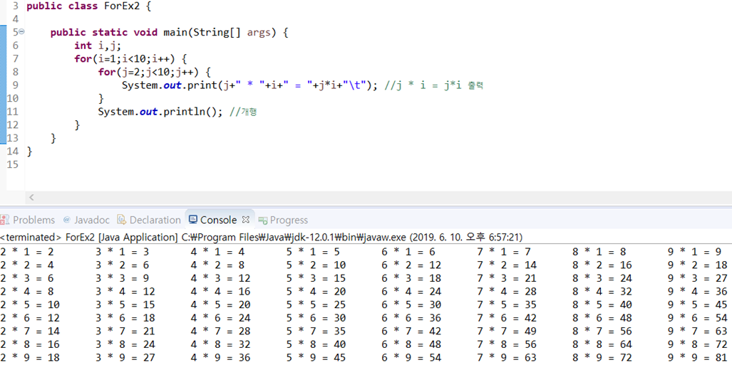 이중for문, while문으로 구구단 만들기